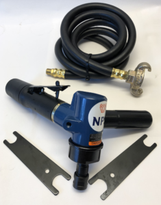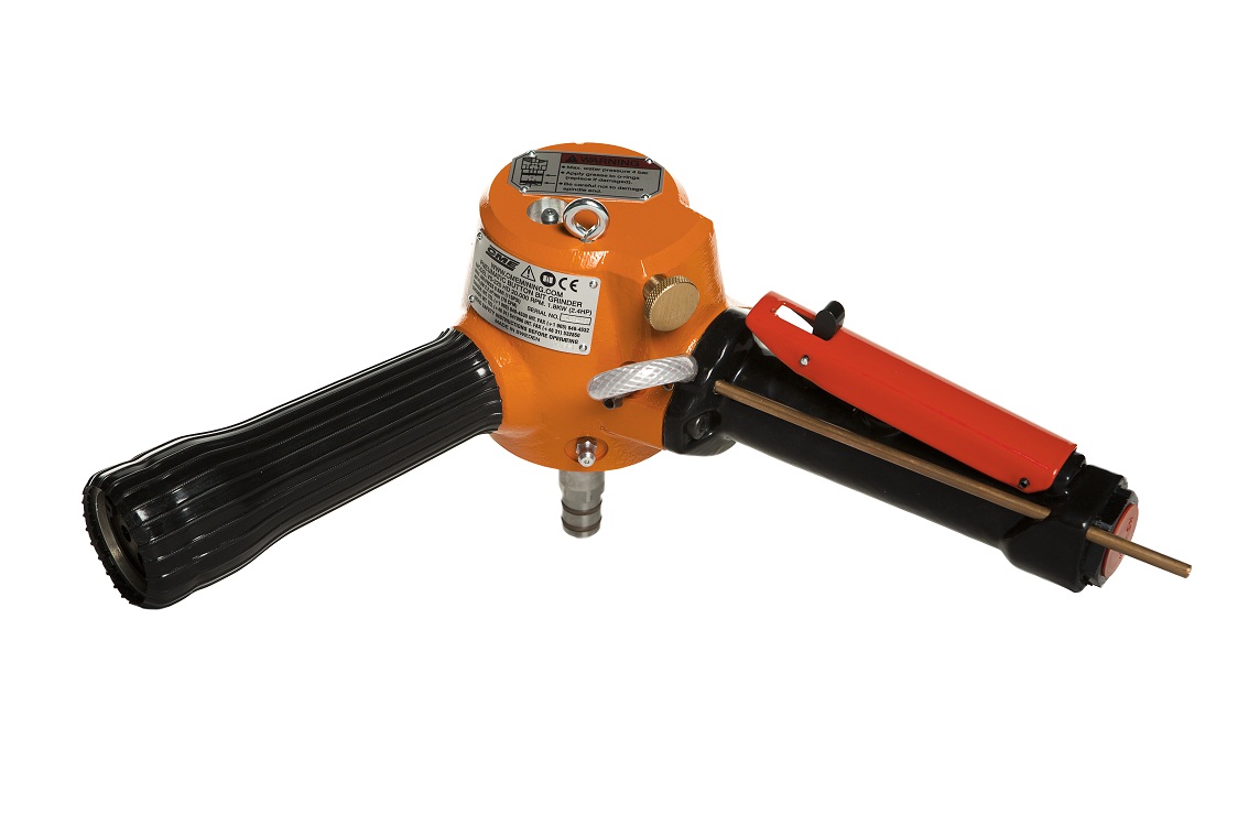 Slipemaskinen er beregnet for luftspyling og er trykkluftdrevet med et arbeidstrykk fra 5 – 7 bar.
